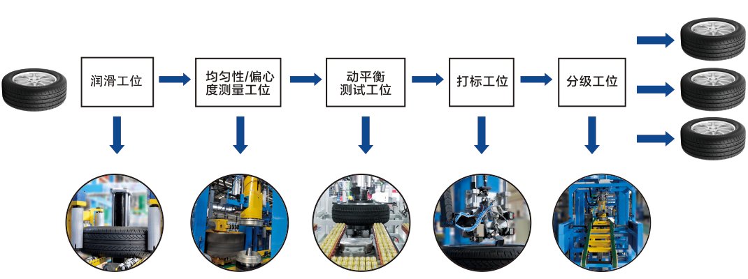 PUB系列輪胎動平衡/均勻性聯機線是檢驗輪胎質量的關鍵設備,主要用于對轎車、輕卡子午線輪胎的動平衡、均勻性、尺寸偏差及凹凸度進行全自動在線測量。