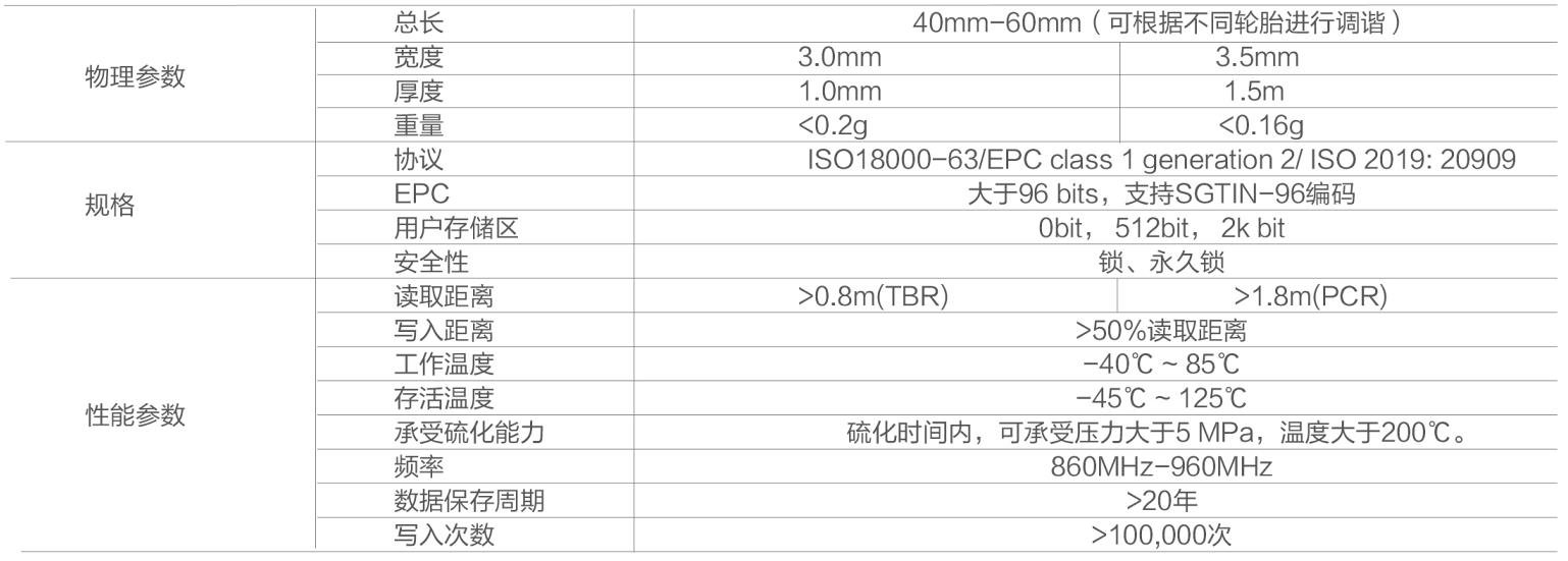 輪胎用RFID電子標簽在成型過程植入輪胎,標簽可以經受輪胎成型及硫化過程中的形變、高溫、高壓;同時,剛柔并濟的產品結構使電子標簽能夠承受輪胎使用過程中的各種曲撓形變及壓力,可在輪胎的全生命周期中使用。