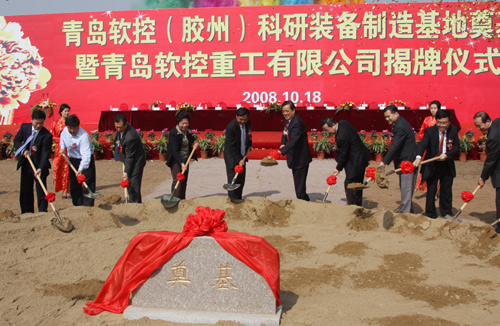 中國石化協(xié)會會長李勇武對公司此戰(zhàn)略舉動(dòng)高度評價(jià),認(rèn)為軟控一直在努力實(shí)現(xiàn)中國老橡膠人多年的夢想,他還進(jìn)一步表達(dá)了對軟控的殷切期望,并與山東省政協(xié)副主席、工商聯(lián)主席王乃靜,青島市人大常委會主任張若飛,膠州市委書記祝華一起為軟控重工揭牌;全體到場嘉賓共同為“基地”奠基。