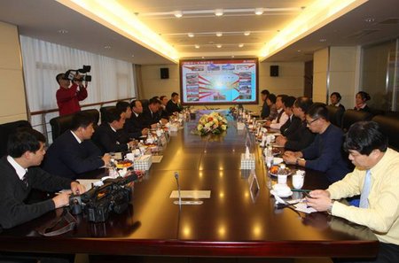 11月22日,棗莊礦業集團董事長江衛,集團副總經理、八一輪胎公司董事長殷濤及八一輪胎公司副董事長、總經理楊震一行到我公司參觀交流,董事長袁仲雪、常務副總裁王金健等熱情接待了他們,雙方就將來更深一步的合作達成了初步意向。 在江衛一行對國家中心實驗室、輪胎信息化生產示范基地及公司研發中心等處的參觀途中,公司技術人員向他們介紹了半鋼一次法成型機、巨胎成型機、一次法煉膠、預硫化等最新的技術和研發成果。