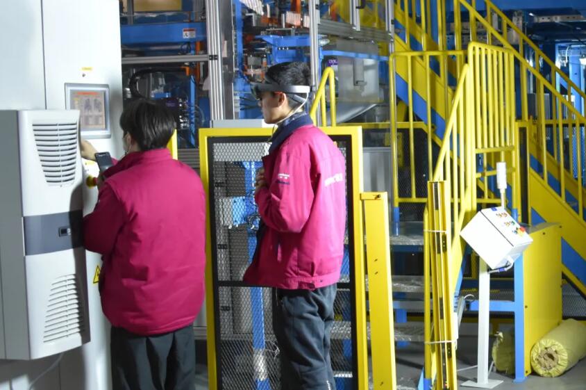 在具體操作過程中,軟控工程師由一人佩戴MR眼鏡,身處大洋彼岸的客戶通過網絡連接就可以在電腦上看到廠內小料設備的實時全景,全面了解設備的整體情況及相關細節。負責此次驗貨的工程師介紹到:通過視頻對話,客戶與工程師進行實時溝通交流,了解設備的整體狀況、進行功性能展示等,客戶通過語音和編輯畫面對設備細節及關鍵點提出疑問,我方工程師團隊予以演示并給予專業解答。MR的高清晰、全方位的視頻畫面實時傳輸,使客戶技術人員如同身臨其境,達到實地勘驗的效果。