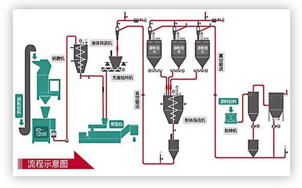 原料接收:多種投料方式可選,可實現(xiàn)各種包裝的無塵卸料;作業(yè)人員操作方便,沒有錯投漏投的損耗;原料篩分保證質(zhì)量,工作環(huán)境保持清潔。