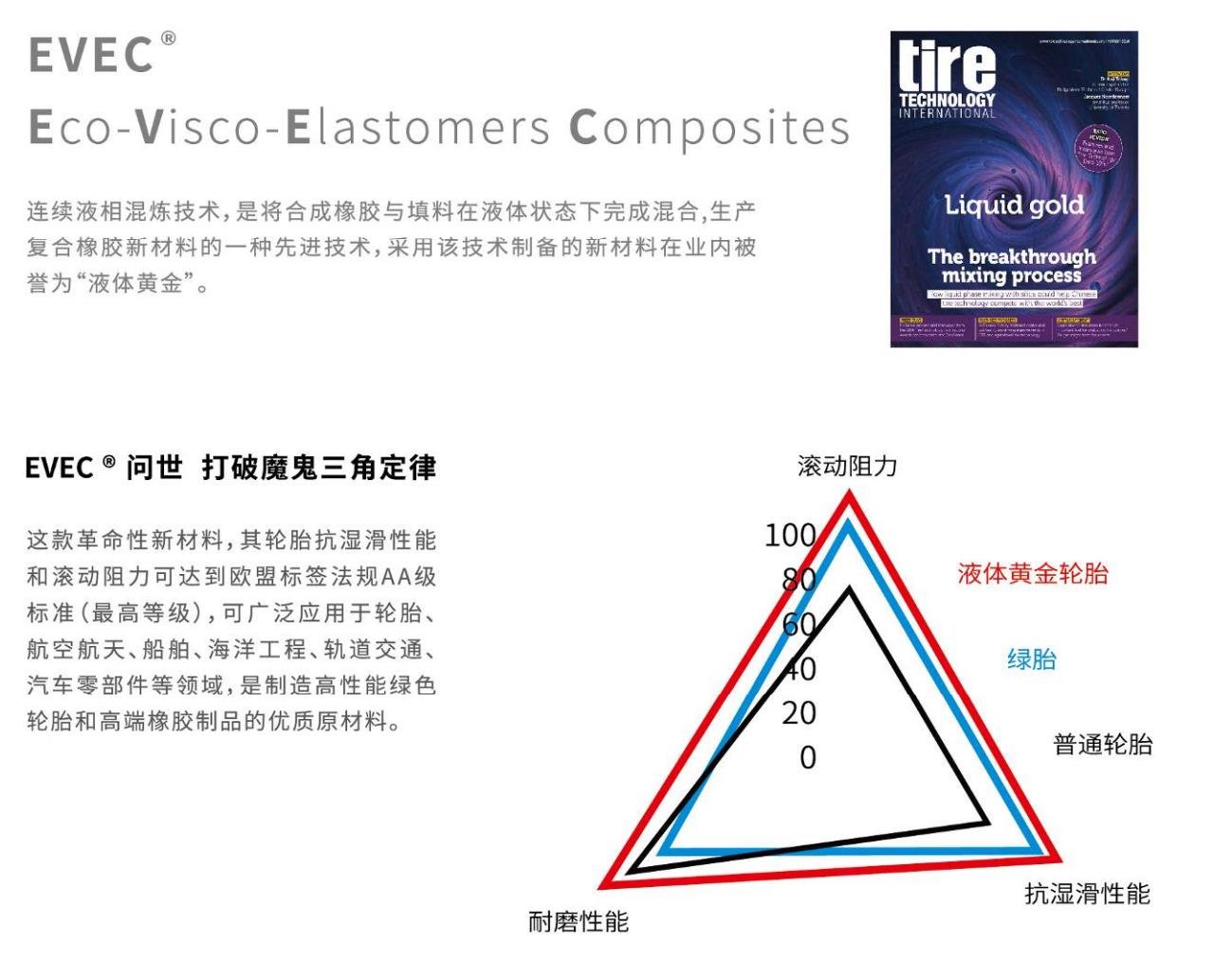 這款革命性新材料,其輪胎抗?jié)窕阅芎蜐L動阻力可達到歐盟標簽法規(guī) AA 級標準 (最高等級),可廣泛應(yīng)用于輪胎、航空航天、船舶、海洋工程、軌道交通、汽車零部件等領(lǐng)域,是制造高性能綠色輪胎和高端橡膠制品的優(yōu)質(zhì)原材料。